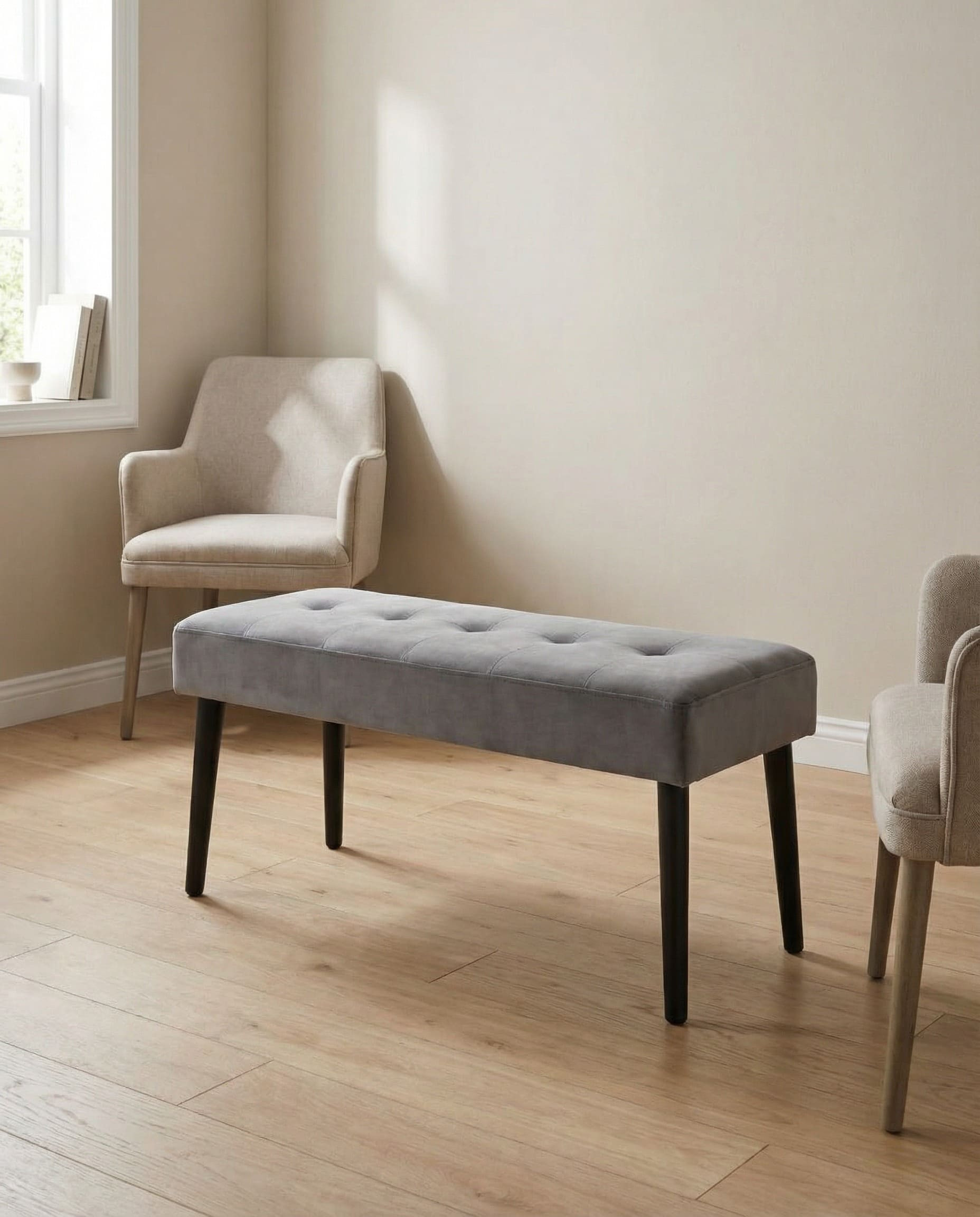 El taburete pie de cama SORENmoderno destaca por su elegancia sutil y su diseño equilibrado. Su presencia discreta, pero sofisticada lo convierte en una pieza capaz de transformar un pasillo, salón o dormitorio con naturalidad.