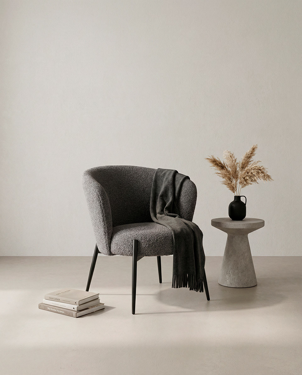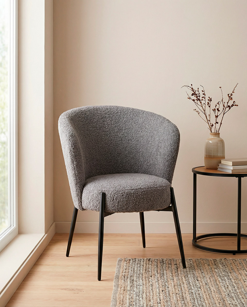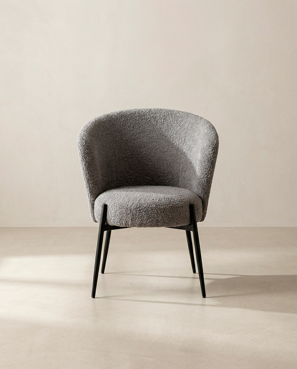 La silla NIVA destaca por su respaldo redondeado, su comodidad y su diseño actual. Con tapizado cuidado, linear limpas y patas negras que estilizam, es puro estilo contemporáneo.