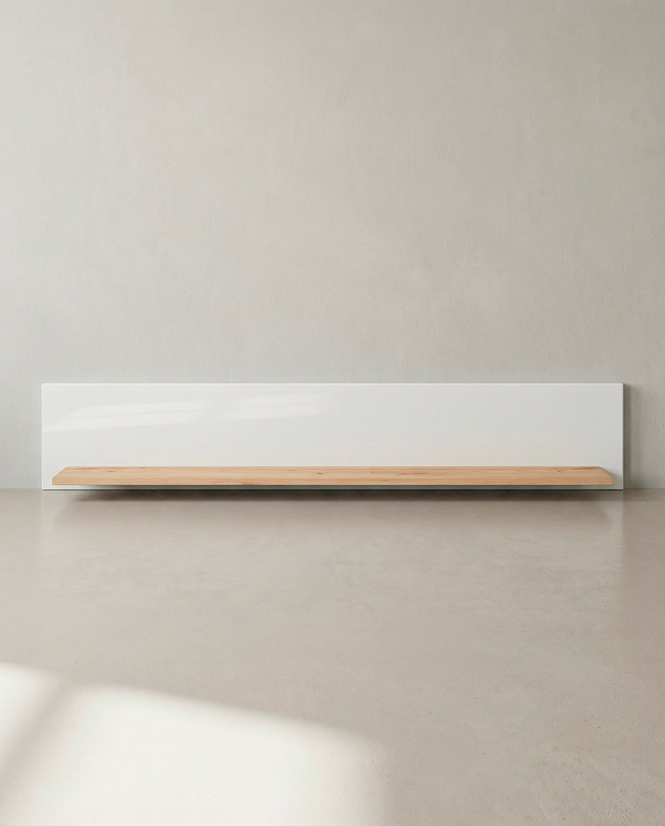 Estante para colgar en pared ELAN en color roble natural combinado con blanco.