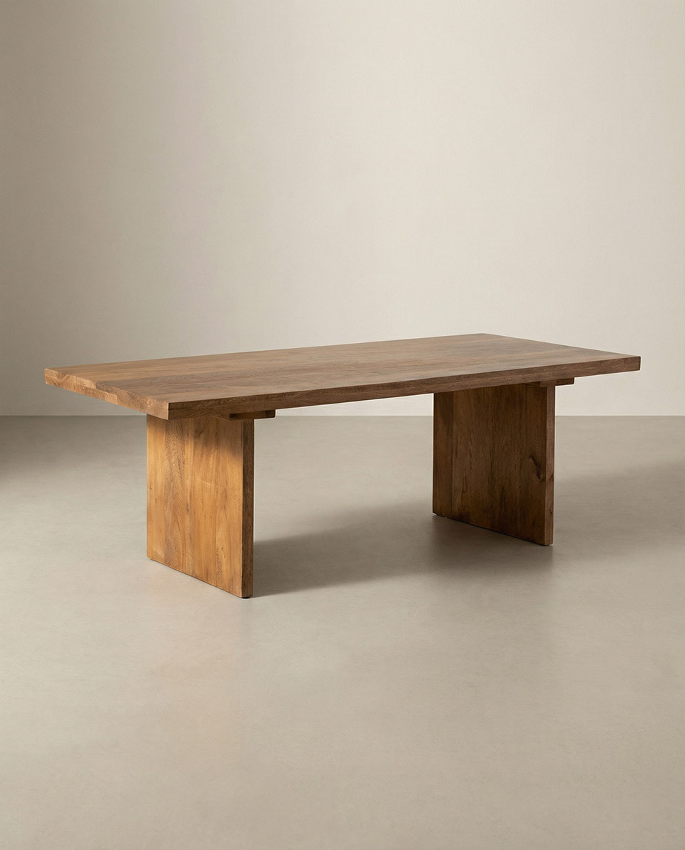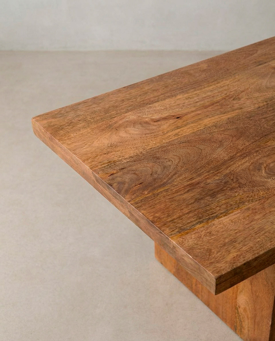 Fabricada en madera de mango maciza, un material natural muy valorado por su resistencia, durabilidad y belleza. Cada mesa presenta vetas y matices únicos, lo que hace que cada pieza sea especial.