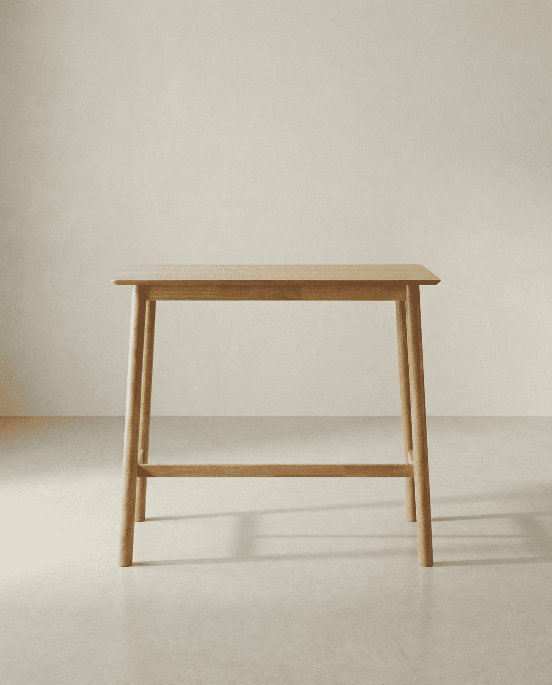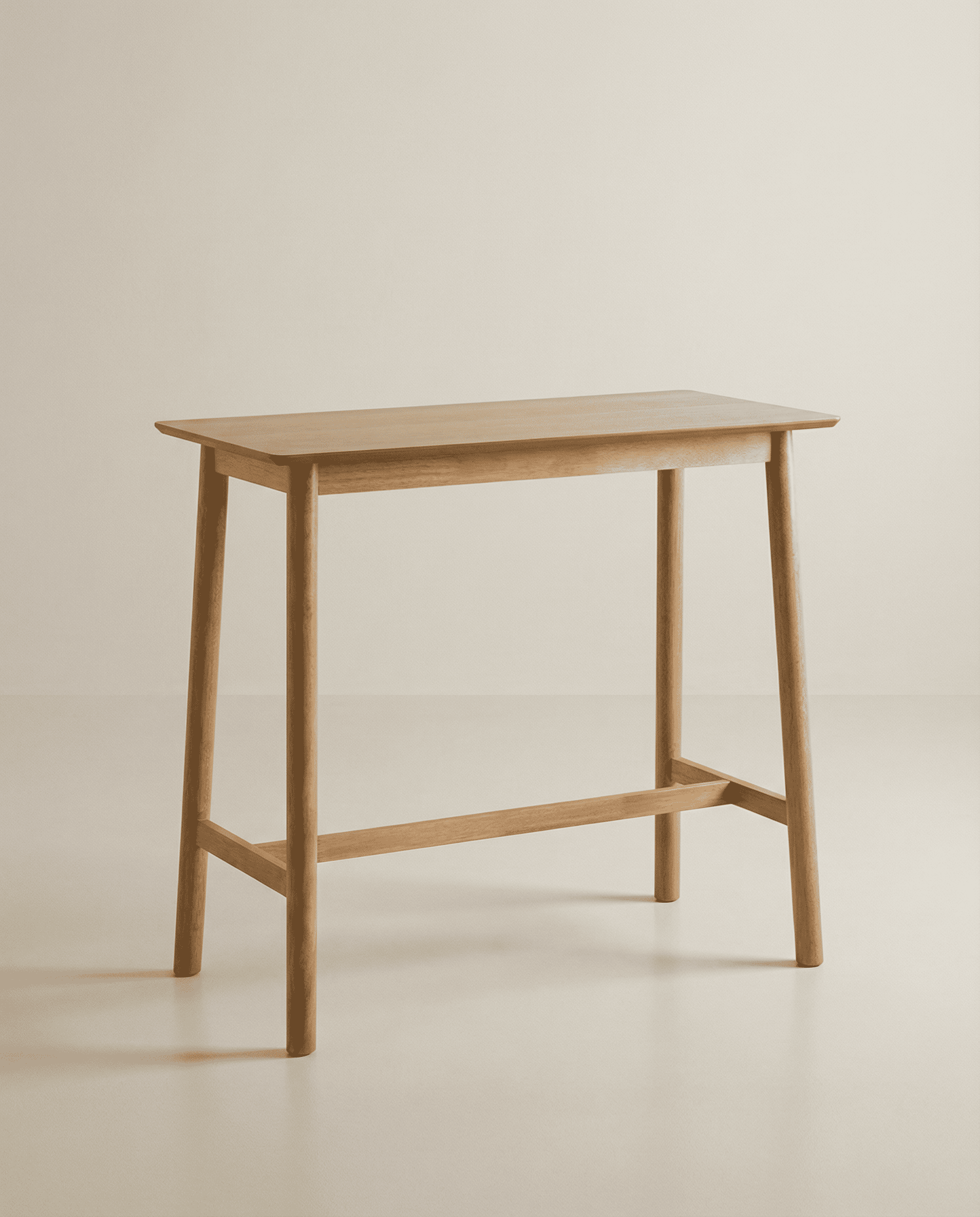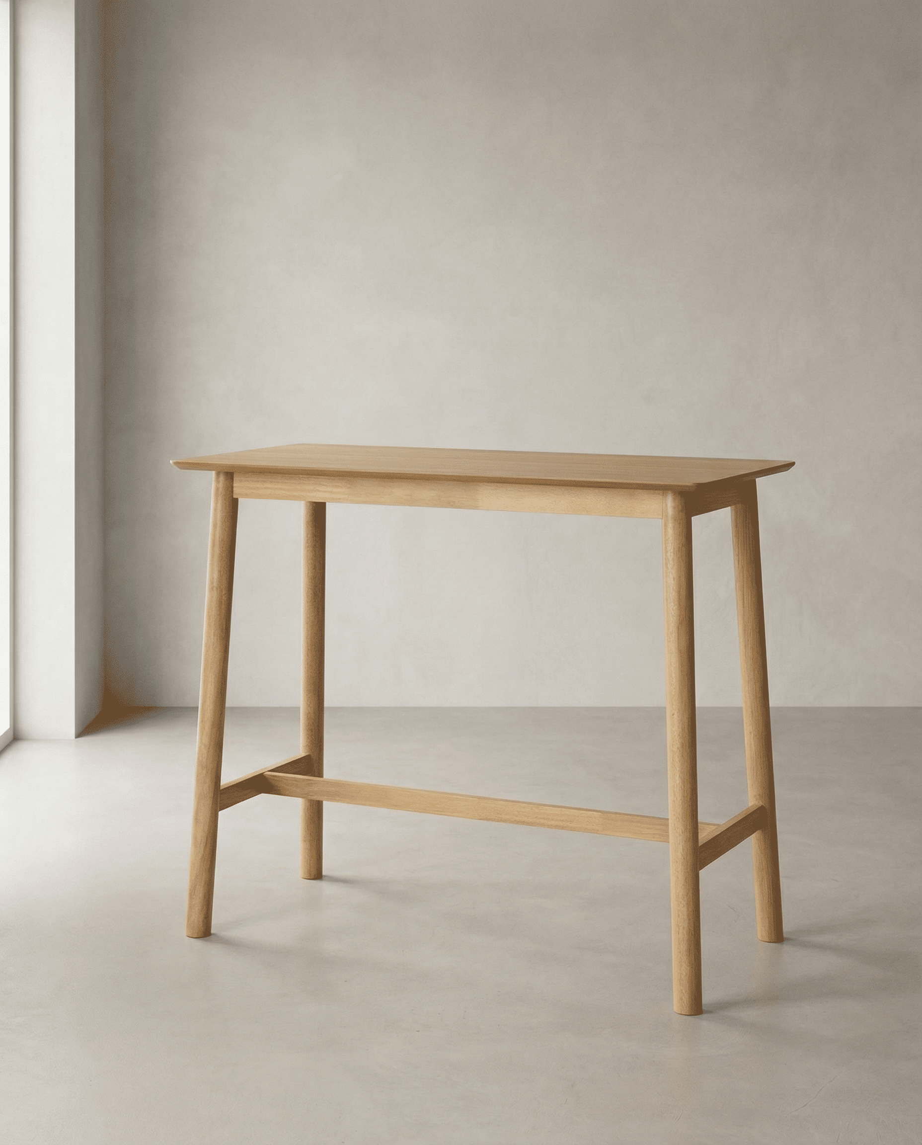 La mesa bar TOLEN combina diseño natural y funcionalidad para crear un ambiente acogedor en cocinas, comedores o zonas de desayuno. Su estructura con acabado efecto roble aporta calidez y un estilo inspirado en el diseño nórdico, mientras que sus líneas sencillas y estilizadas permiten integrarla fácilmente en diferentes estilos decorativos.