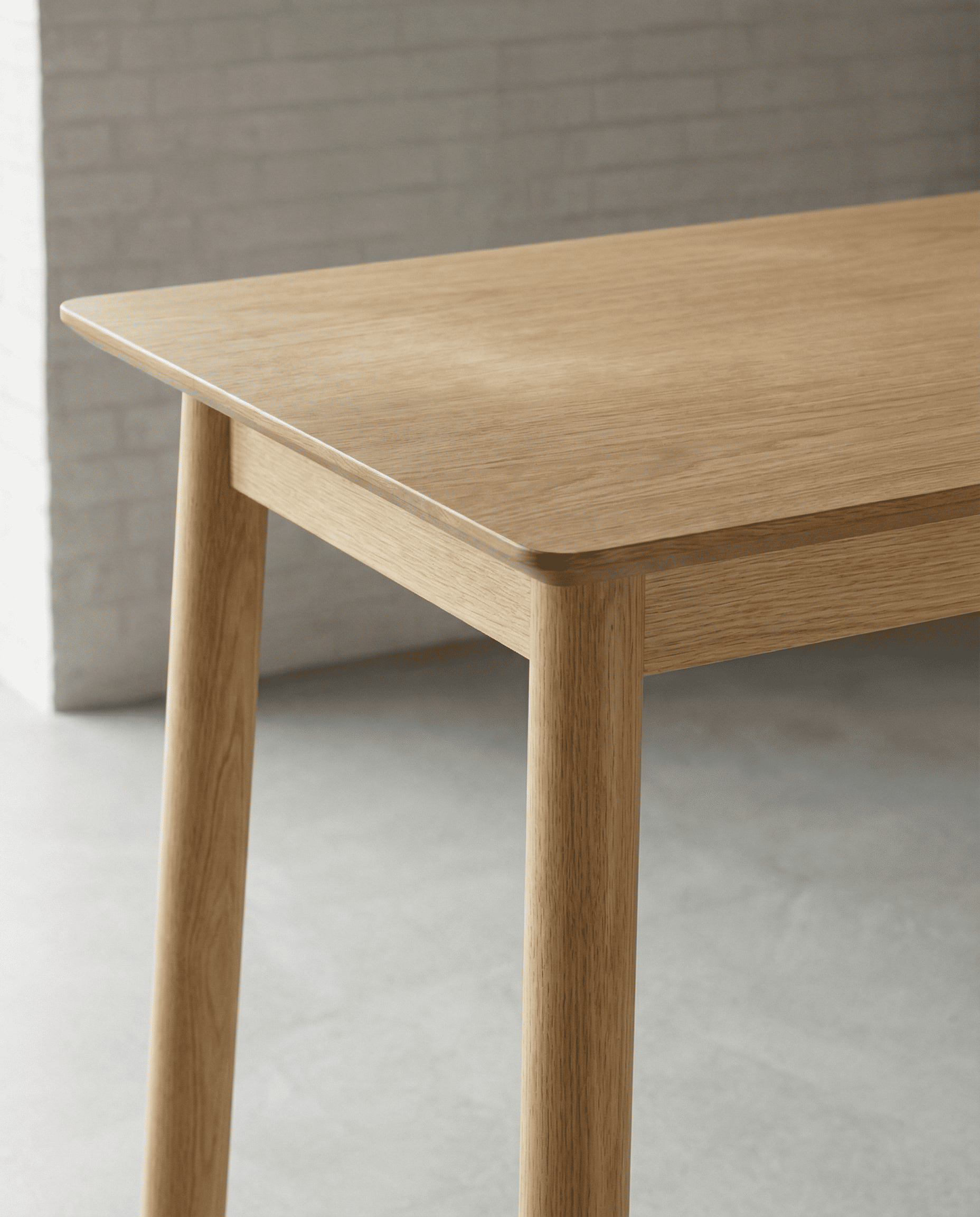 Fabricada en madera con chapa de roble lacada que aporta resistencia y un acabado natural.