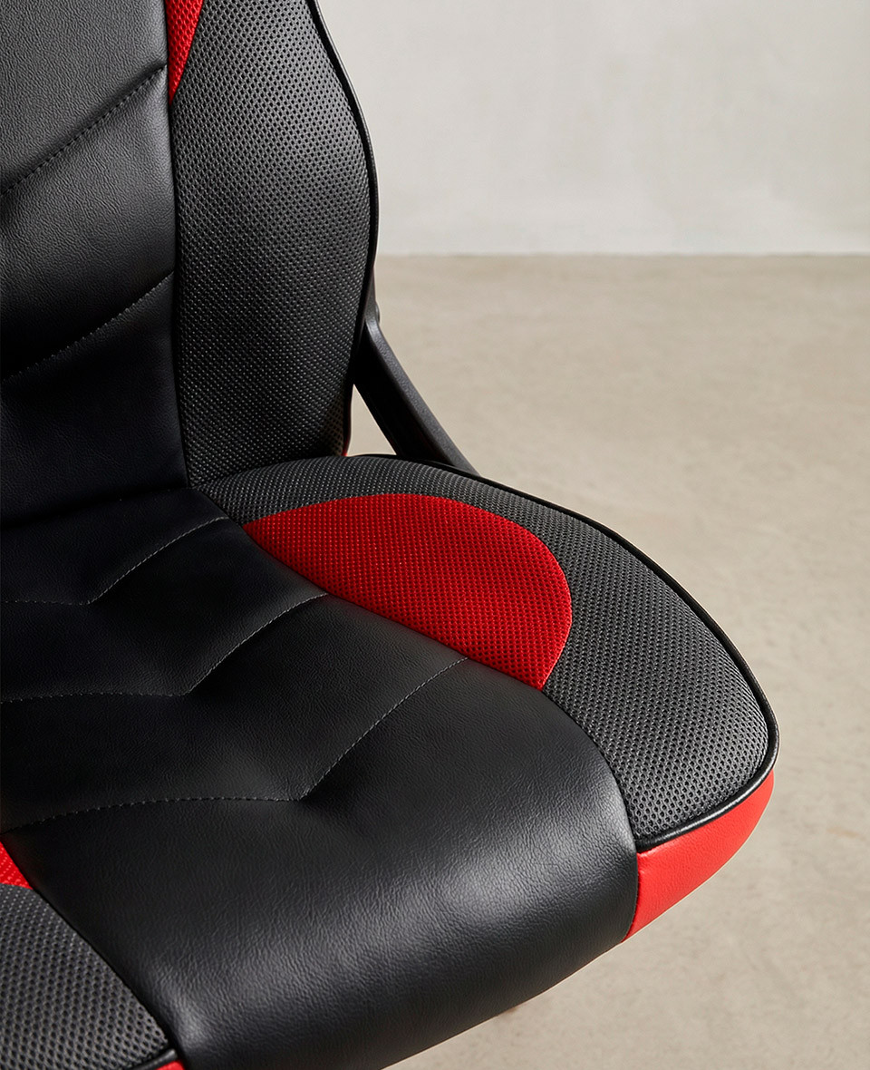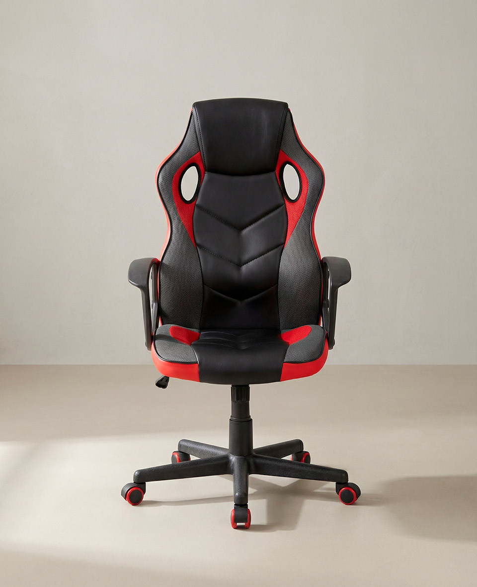 Esta silla se encuentra en color negro con rojo, azul o blanco.
