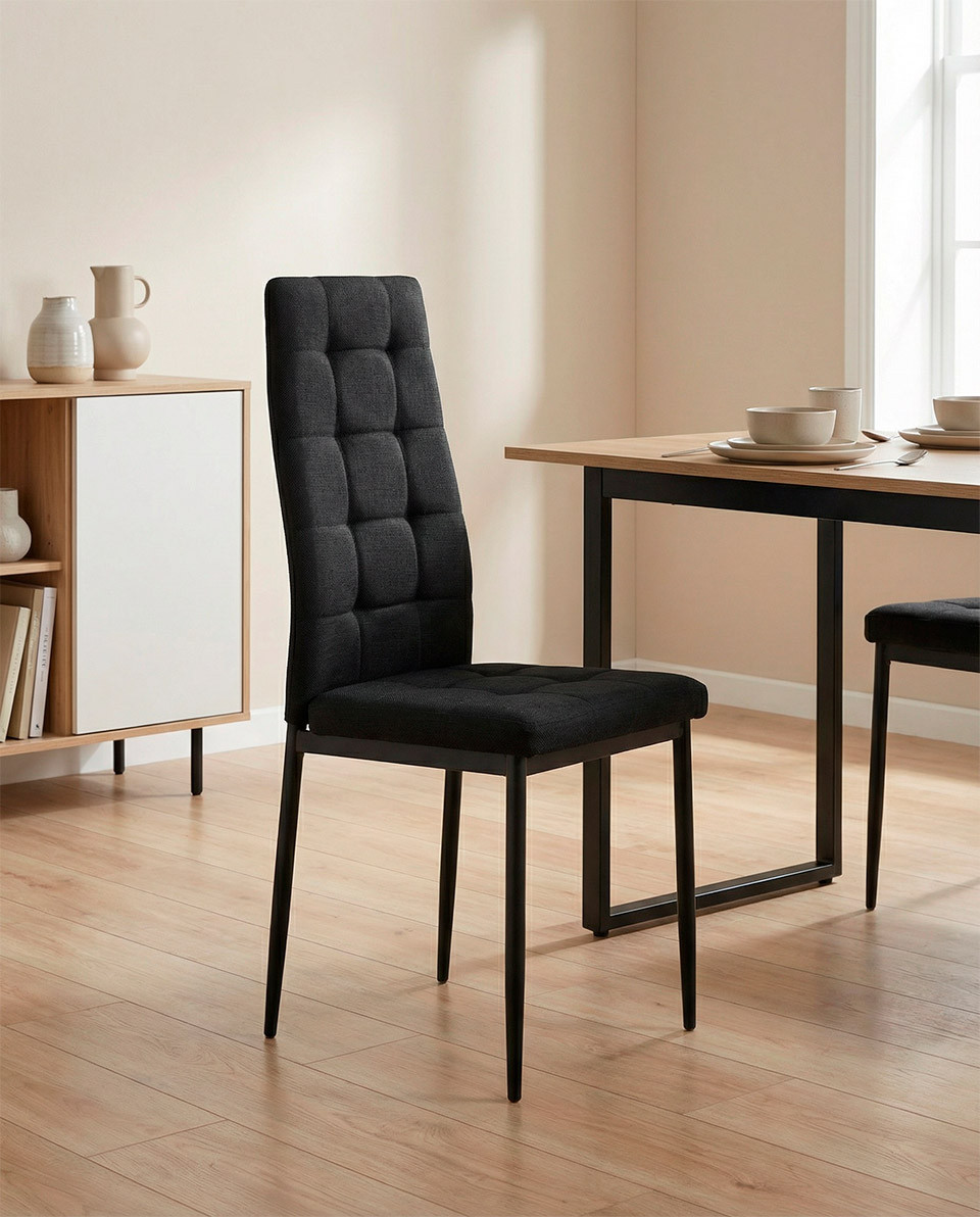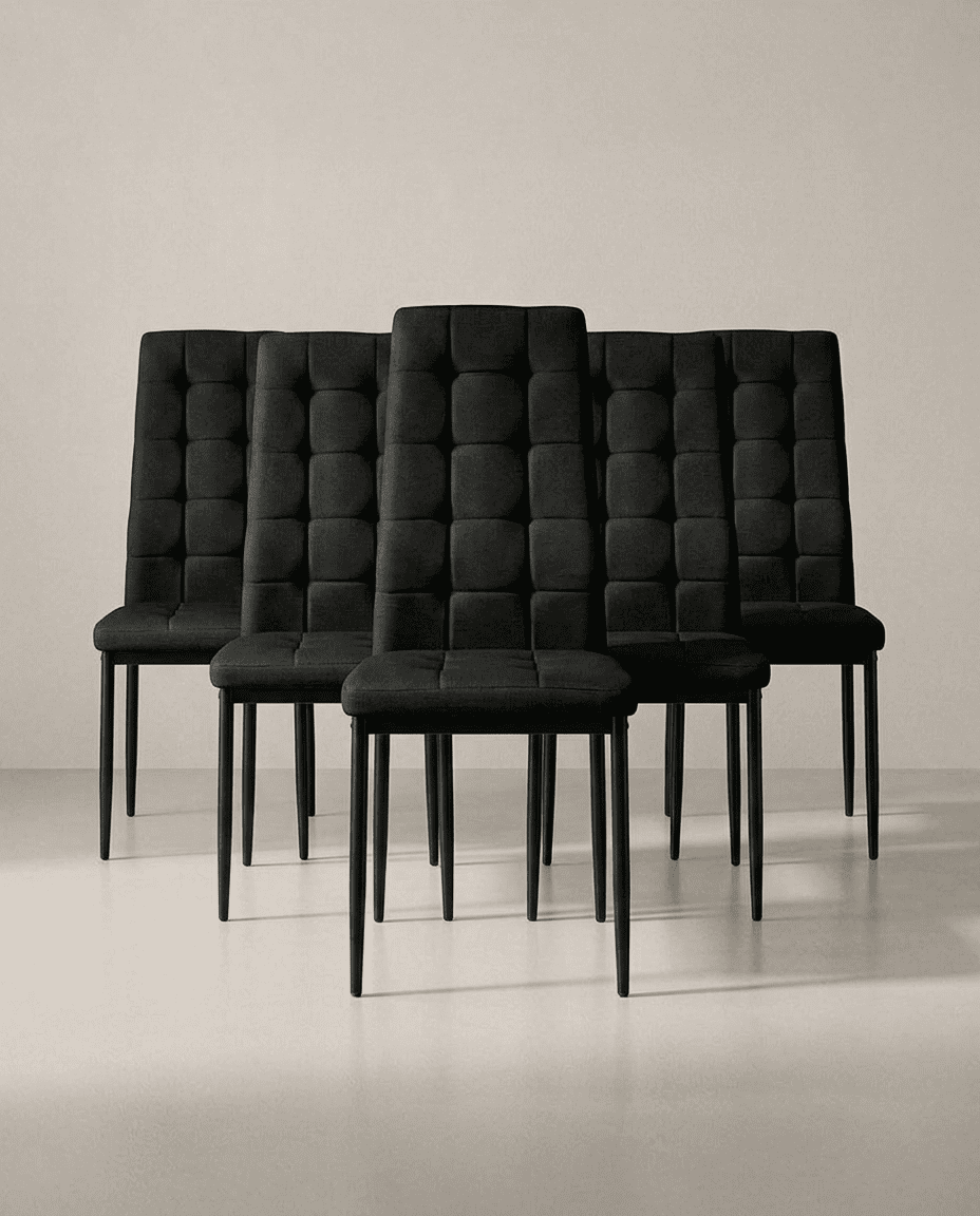 Pack 6 sillas de comedor tapizadas en textil negro y blanco