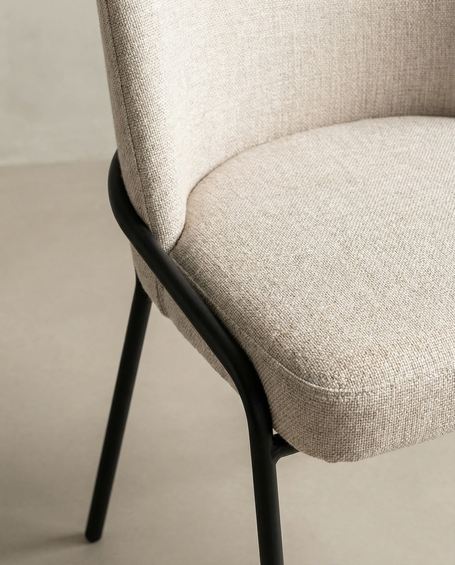 Silla de comedor tapizada en beige, taupe ó gris en microfibra.