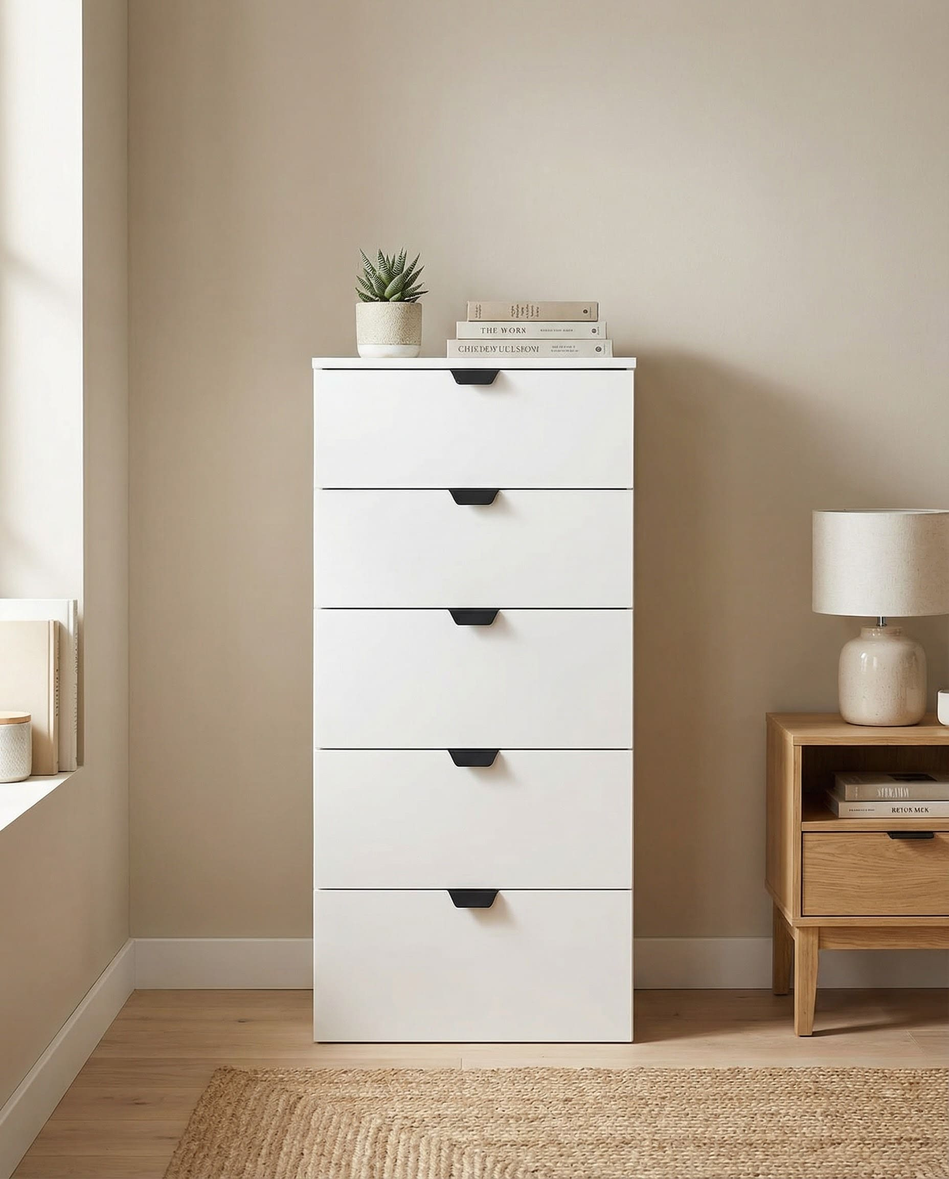 Sinfonier de 5 cajones en dos colores a elegir: blanco o roble artisan.