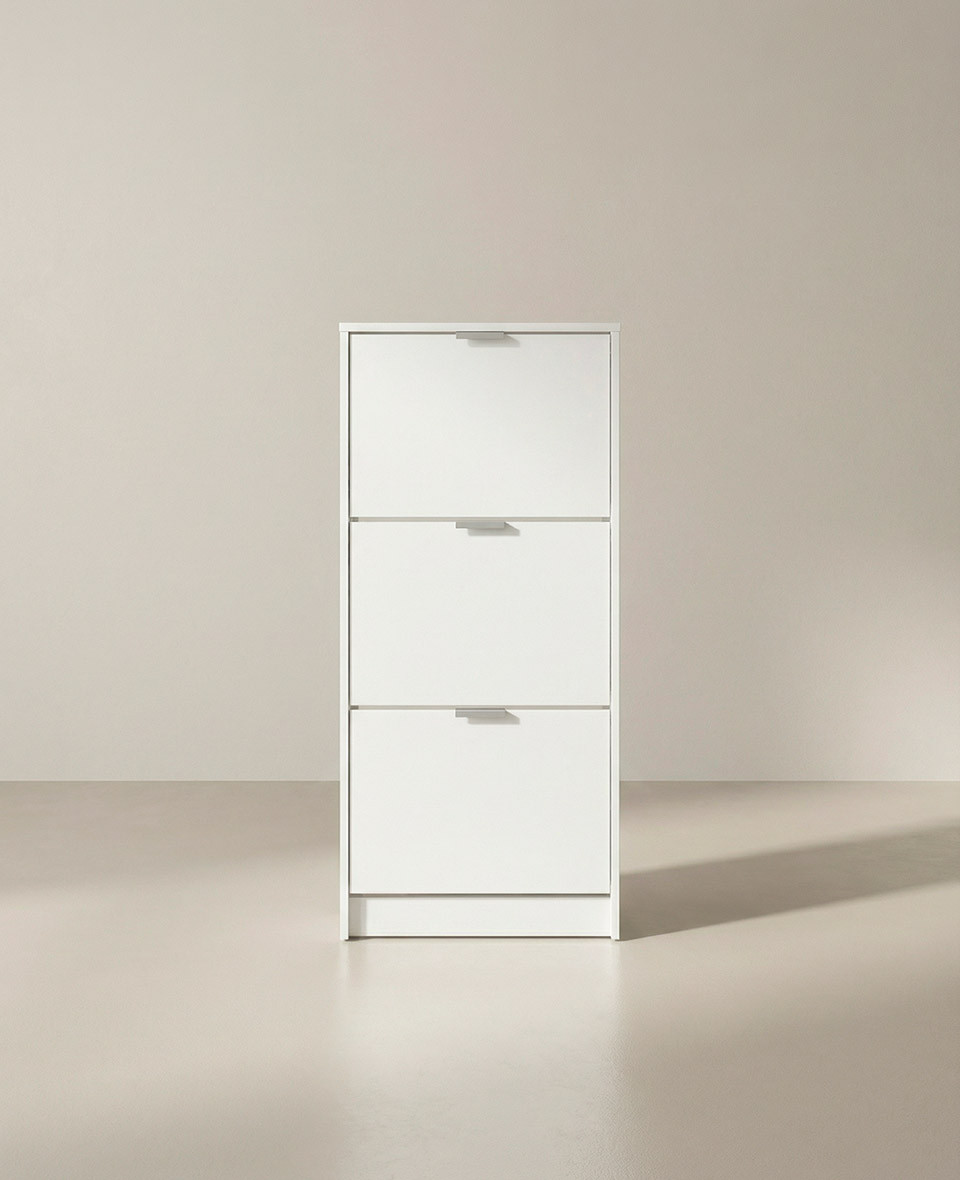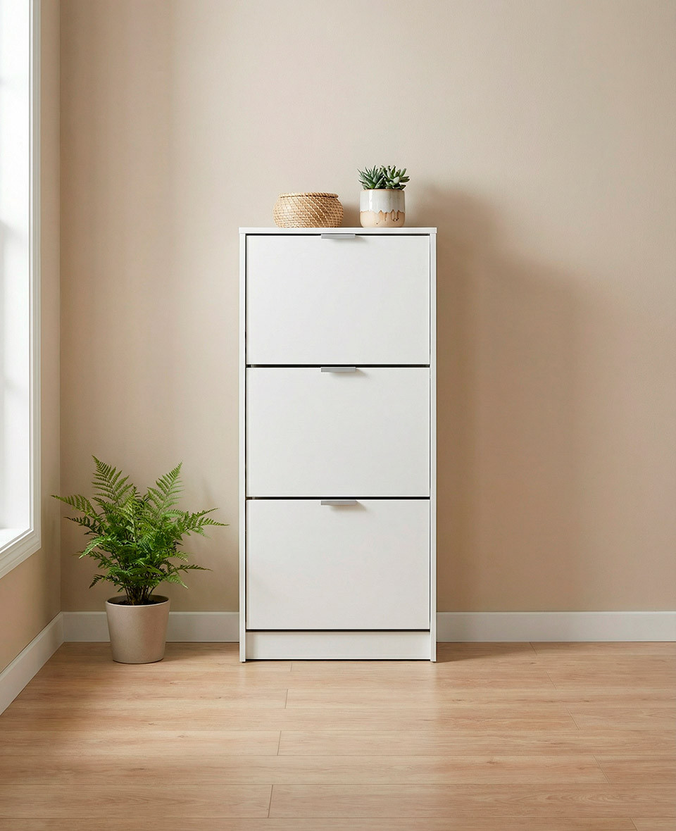 El zapatero PAXO de tres puertas abatibles es la opción ideal para mantener todos tus zapatos perfectamente ordenados sin ocupar apenas espacio. Su diseño práctico y funcional lo convierte en una solución perfecta para recibidores, pasillos o dormitorios.