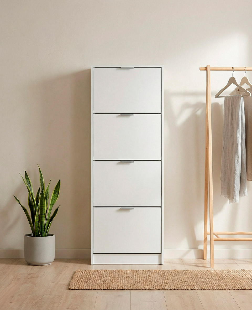Zapatero con 4 trampones en color blanco.